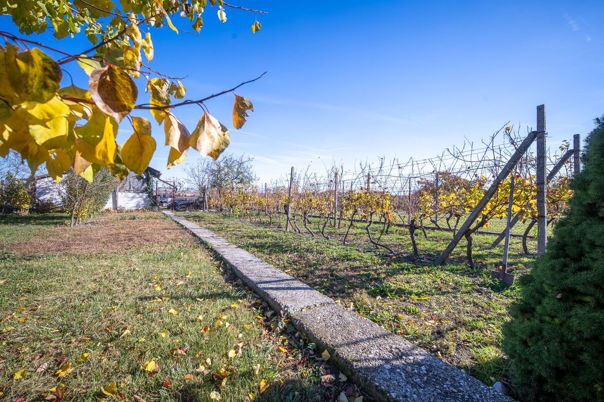 Pekný a rovinatý pozemok poskytuje dostatok miesta pre záhradu, oddychovú zónu alebo letnú kuchyňu. Atmosféru dopĺňa krásny výhľad na okolité vinice a Karpaty – prostredie ako stvorené pre pokojný život.