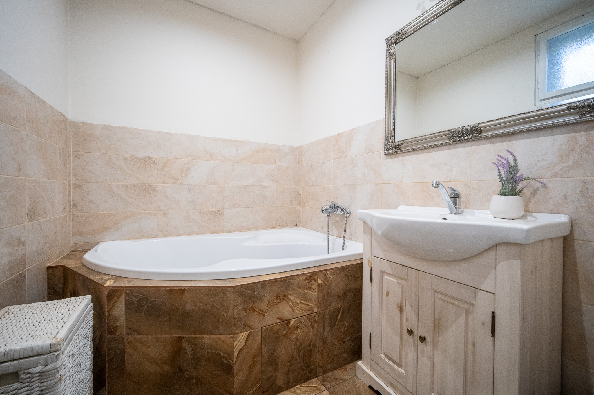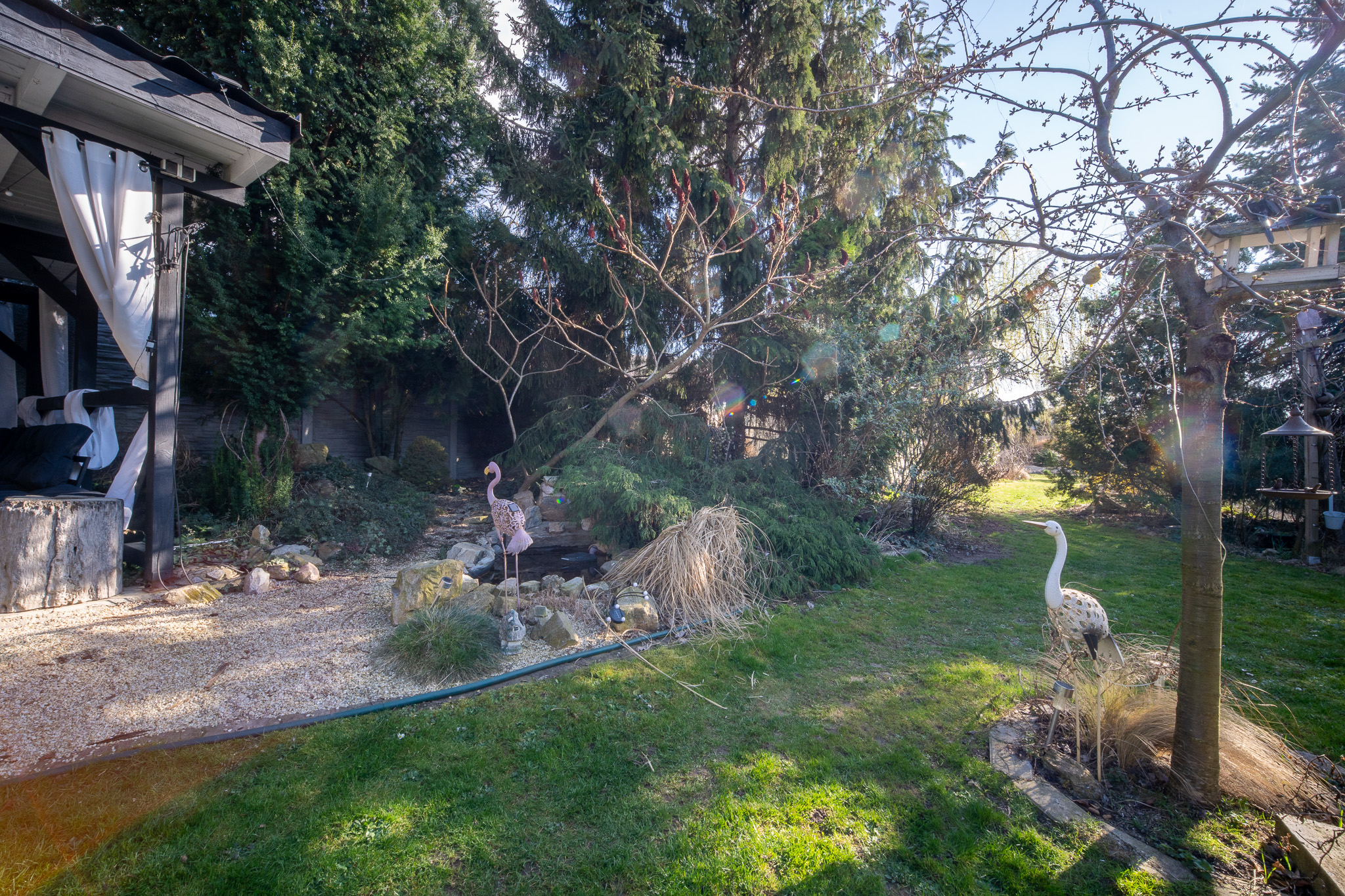 Celý dojem domu prirodzene dopĺňa nádherne upravená záhrada, ktorá pôsobí doslova čarovne. Množstvo kvetov, zelene, zákutí na oddych a pokojná atmosféra vytvárajú miesto, kde si viete predstaviť rána s kávou, večery pri západe slnka aj víkendy bez ruchu mesta. Všetko spolu pôsobí harmonicky a dotvára celkový charakter tejto nehnuteľnosti.